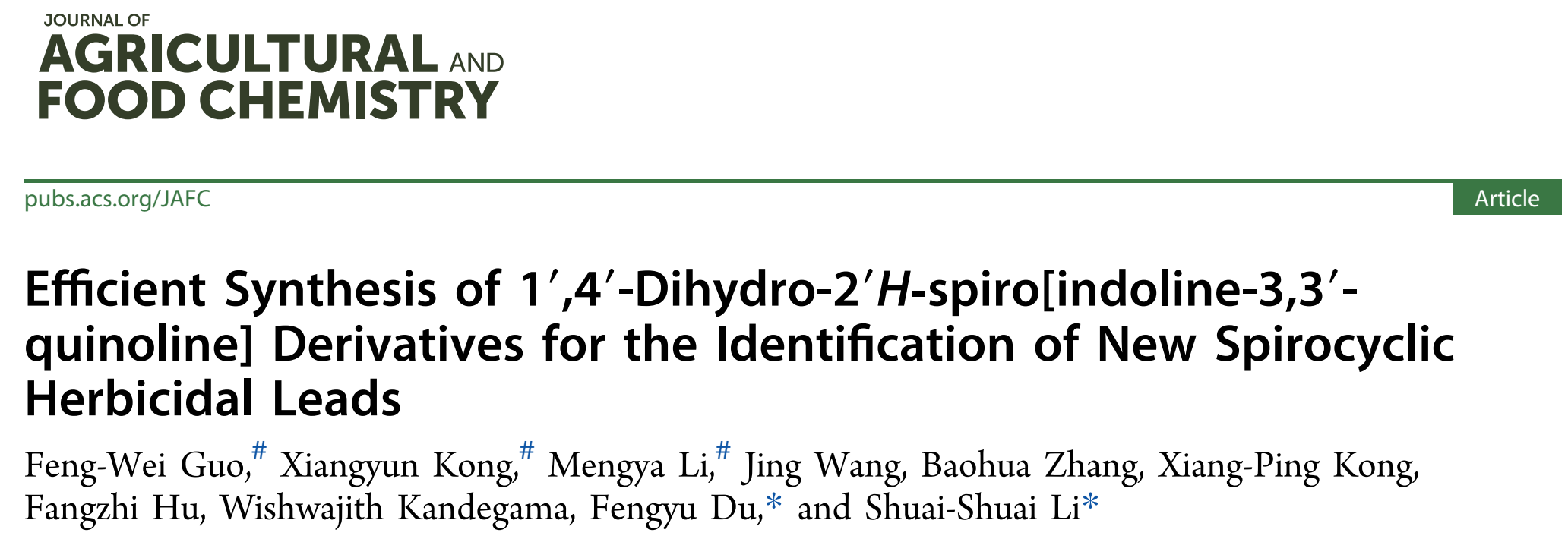我校化学与药学院、山东省农用药物绿色创制与应用特色实验室李帅帅教授、杜丰玉教授等,通过与中国-斯里兰卡茶叶绿色防控“一带一路”联合实验室合作,开发出了将平面芳香分子转化为三维立体螺旋分子的绿色合成方法,建立起系列螺杂环化合物库,并以除草活性为导向开展活性筛选,基于构效关系不断修饰、改造活性分子,最终发掘出除草性能优异的潜力分子,相关工作发表在农林食品科学领域国际期刊Journal of Agricultural and Food Chemistry (Top, 中国科学院一区), DOI: 10.1021/acs.jafc.4c12106.