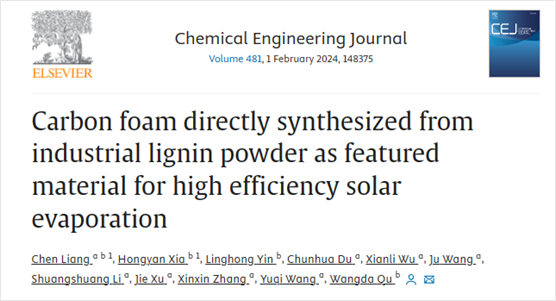 近日,青岛农业大学生命科学学院曲望达教授课题组在中科院一区Top国际权威期刊《Chemical Engineering Journal》 (影响因子:15.1)发表了题为“Carbon foam directly synthesized from industrial lignin powder as featured material for high efficiency solar evaporation”的研究论文。