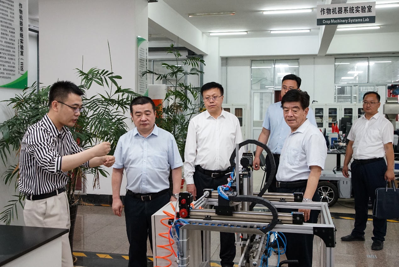 会议期间,王志刚一行调研参观了学校机电工程学院、群芳圃、特种食品研究院、草业学院等,实地了解学校建设发展和学生工作开展情况。