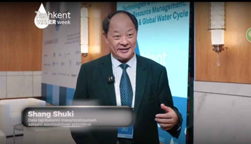 近日,青岛农业大学机电工程学院尚书旗教授、王宝超教授参加“塔什干水周(Tashkent Water Week 2026)国际论坛”,并出席相关专题论坛及学术交流环节。论坛期间,尚书旗教授接受了乌兹别克斯坦国家新闻频道“Oʻzbekiston 24”电视台等媒体采访,就中国在保护性耕作与智能农机领域的研究进展进行了介绍。